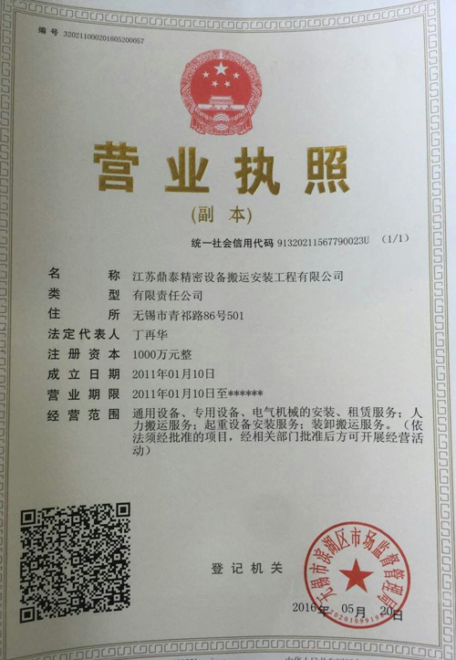 江苏鼎泰精密设备搬运安装工程有限公司坐落于江苏省无锡经济开发区钱胡路1209号。 公司长期致力于专业提供各类型精密设备、仪器,重型及超大,超重机电设备吊装,设备搬运 ,工厂搬迁,设备拆卸、安装,设备包装,设备运输的规模化、一体化专业性施工企业及专业 服务提供商,为生产或拥有各类精密设备、大中型设备的厂商及企业提供“科学,高效,安全 ,专业”的工程解决方案和完善的服务项目。