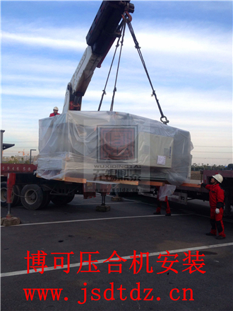 压机车间门高度仅2.8米,而压机竖立后高度3.5米,重量22吨。如何安装的难题摆在了客户的面前。我公司派出工程师到现场查勘,给出了在车间内叉车配合竖立方案,经设备厂商与客户相关工程师审核,决定采用此方案安装作业。