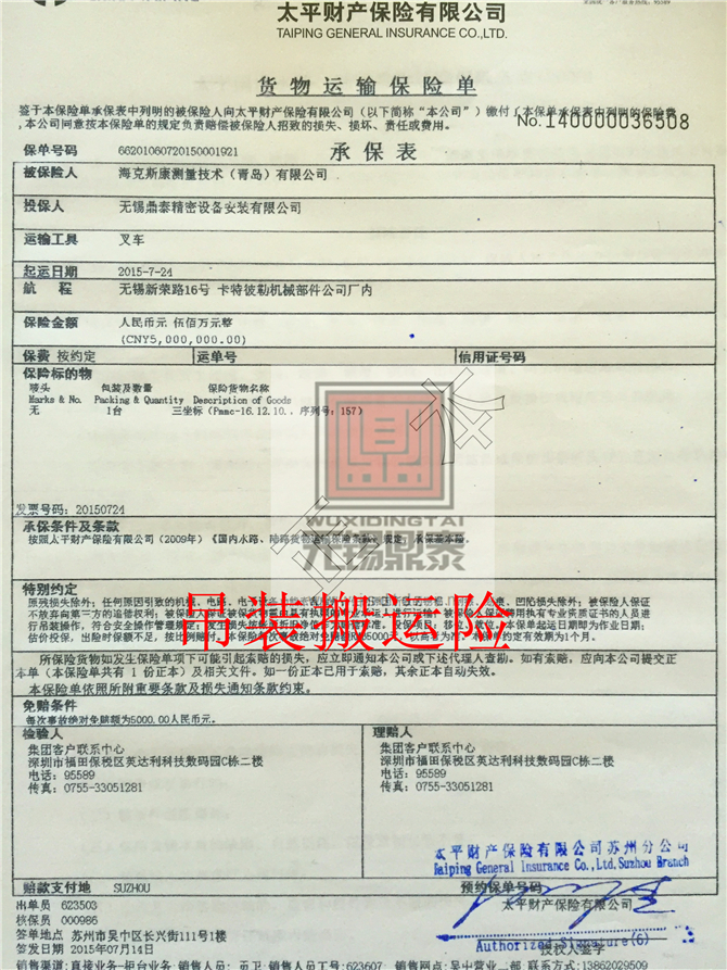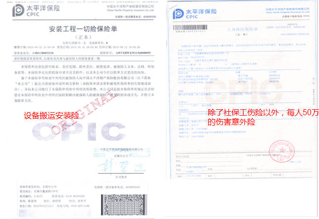 NO.5 鼎泰更有强大的品牌保险公司承保《安装工程一切险》,为我们贵重的财产保驾护航