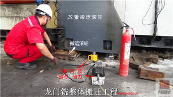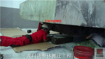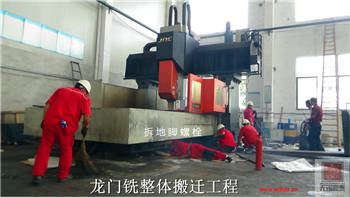 NO1.拆地脚螺栓:通常大型龙门铣为了加工精度及稳定性,都预埋地脚固定螺栓固定设备,因此搬迁时必须拆除