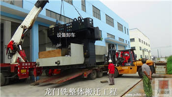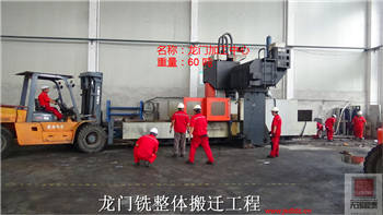 2015年8月份,无锡鼎泰应“无锡佳睿宝精密机械有限公司”的委托,承接其公司搬迁工程。由于其公司有数台大型龙门加工中心,整机重量60吨,根据龙门加工中心的特殊结构,如果不拆除横梁及立柱,一台吊车是不能整体吊装的,因为采用一台吊车吊装,横梁会阻挡吊绳形成的夹角。如果采用2台吊车抬吊,吊装场地狭窄,并且机械使用成本高。如果分解搬运,机械的拆装调试费高,并且停产周期长。