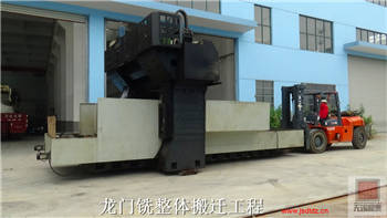我公司工程师经查勘现场及搬迁路线后,为了客户更快的投产,降低搬迁成本。决定对数台大型龙门加工中心采用整体搬运方案。